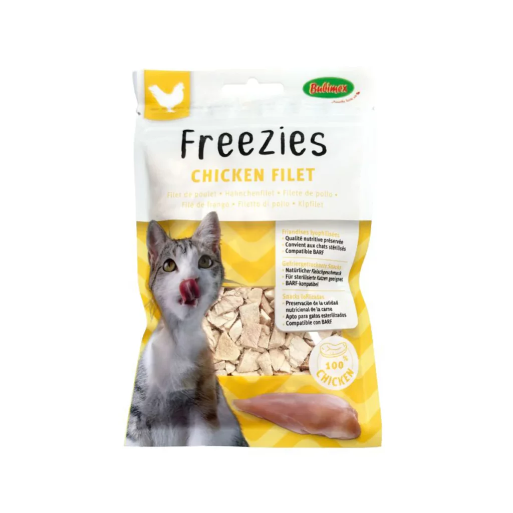Les Freezies au poulet pour chat sont des friandises ultra-naturelles, élaborées avec 100 % de poulet lyophilisé, sans additifs ni céréales. Grâce à la lyophilisation, les qualités nutritionnelles, le goût et les protéines sont préservés sans cuisson excessive. Elles sont idéales comme récompense gourmande, petit snack entre les repas ou pour stimuler l'appétit.