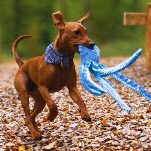 Faites découvrir à votre chien un jeu marin original avec cette Peluche Pieuvre Bleue. Dotée d’un tissu doux, de pattes attrayantes et équipée d’un squeaker et de crinkle, cette peluche offre à la fois confort et stimulation sensorielle.