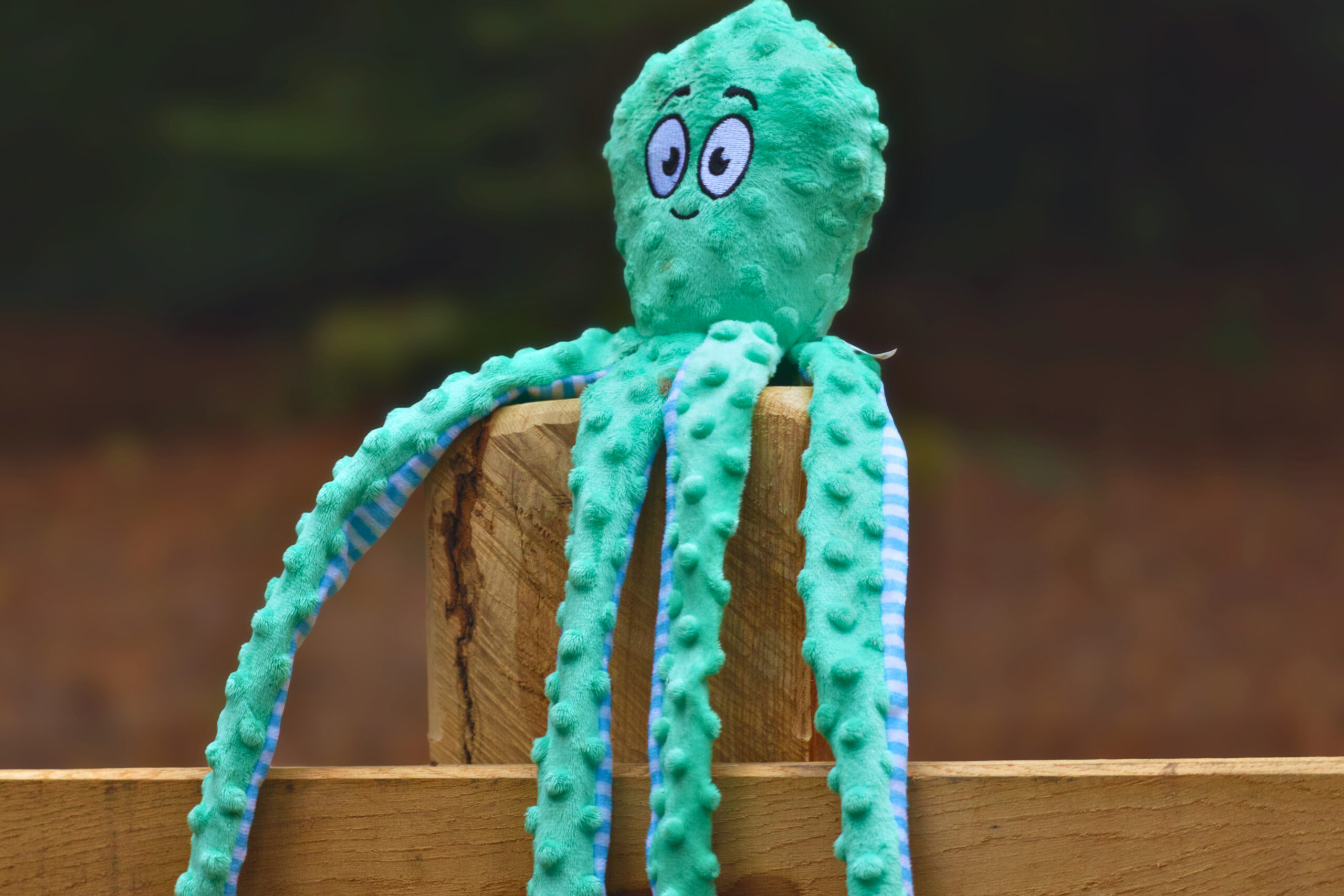 Faites découvrir à votre chien un jeu marin original avec cette Peluche Pieuvre Turquoise. Dotée d’un tissu doux, de pattes attrayantes et équipée d’un squeaker et de crinkle, cette peluche offre à la fois confort et stimulation sensorielle.